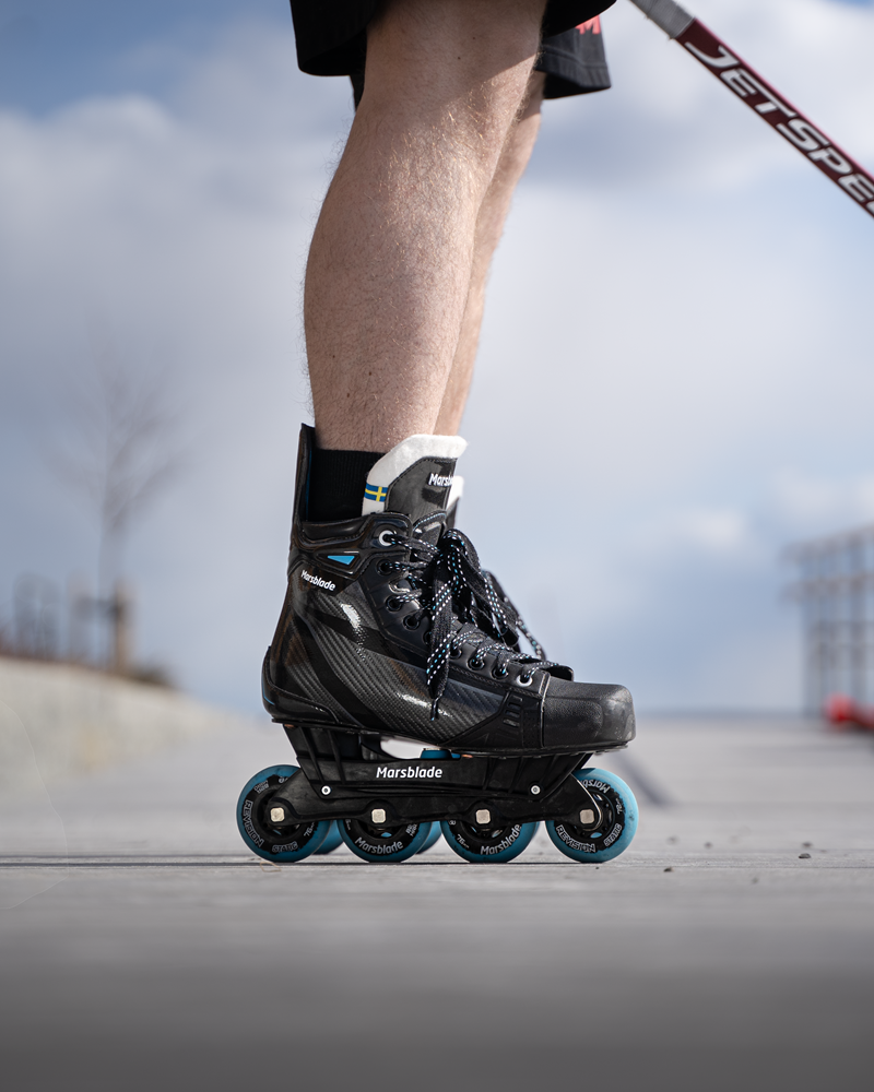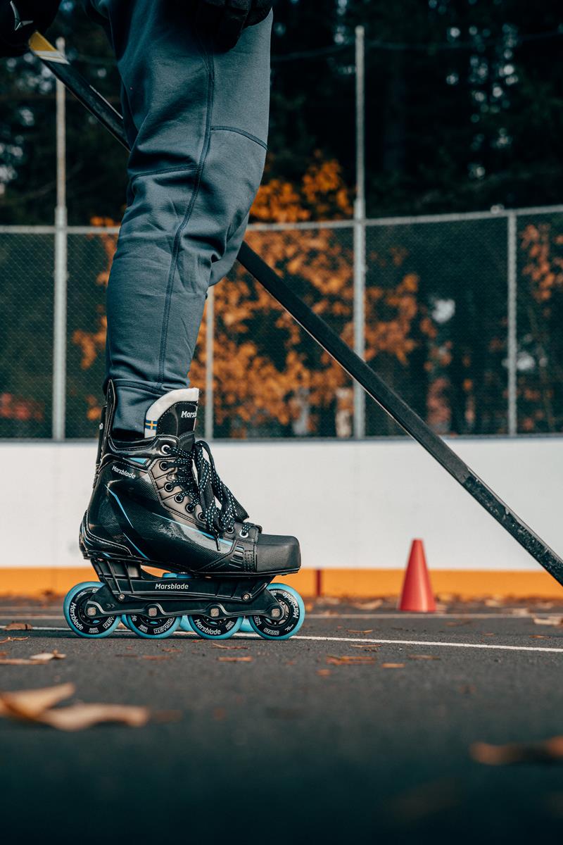 Les rollers hors glace O1 sont dotés de la technologie brevetée Flow Motion, un rocker unique qui simule le patinage sur glace, met à l'épreuve l'équilibre des joueurs et active les bons muscles pour améliorer les performances sur glace.